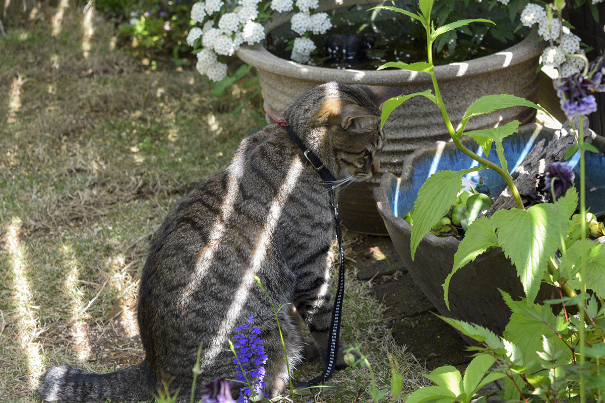 夕方涼しくなってから人間が外は気持ちいいと虎を連れ出してくれました。 まずはメダカチェックです。 なんだか匂います!! 虎がお家にいる間にだれかが来たのでしょうか? 虎のメダカに手を出すやつは許しませんよ!! 手を出していいのは虎だけです。 昼間は暑くてできなかった木登りもしました。 夕方の木の上は風が抜けて気持ちいいですね。 木の下にいる人間は虫がひどいと文句を言っていました。 人間も一緒に登りますか? ...
