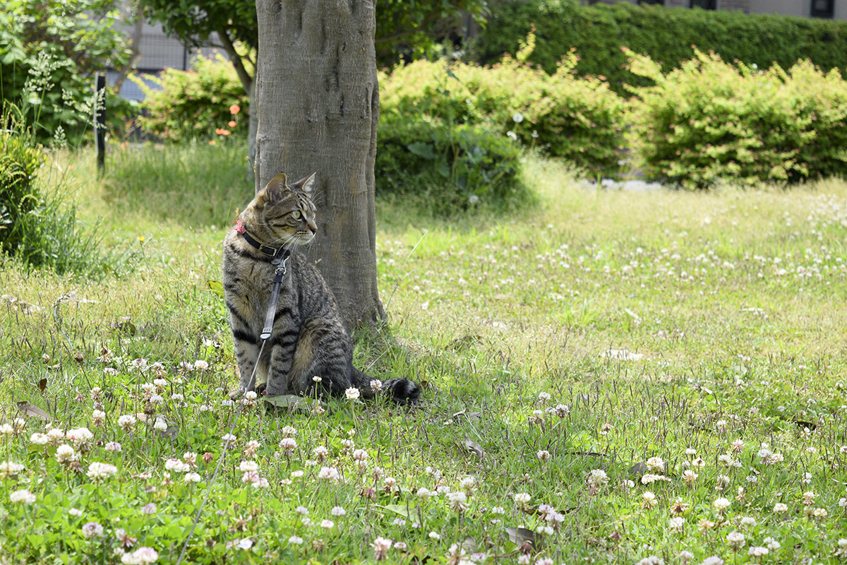 公園にいってみました。 いつの間にかシロツメクサがたくさん咲いてました。 木陰とはいえ暑いのでもっと涼しい場所を求めて滑り台の下に移動です。 ここは涼しくていいですね。 地面が砂なので人間がブツクサいっててうるさいですけど…。 今日も夕方に木登りしました。 うっかり高いところに行き過ぎて人間が脚立をもってきました。 お隣の子がお散歩中の犬に虎が脚立でおろしてもらったことをバラしてしまいました。 余計なことはしゃべっちゃダメですよ!! ...