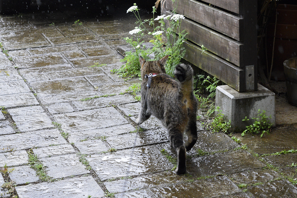 小雨が降っているけどメダカチェックにお外に出ます。 人間は濡れるのがイヤだと文句をいっているけれど気にせずお散歩。 濡れたらプルプルってすればいいんですよ! お口の周りの雨はペロンです。 人間もやってみるといいですよ。 プルプルでは水が飛ばなくなってきたのでそろそろ帰りますか…。 お家まで一気にダッシュですよ!! 人間相変わらず足が遅いですね。 人間が遅いので虎いっぱい濡れちゃったじゃないですか&hellip...