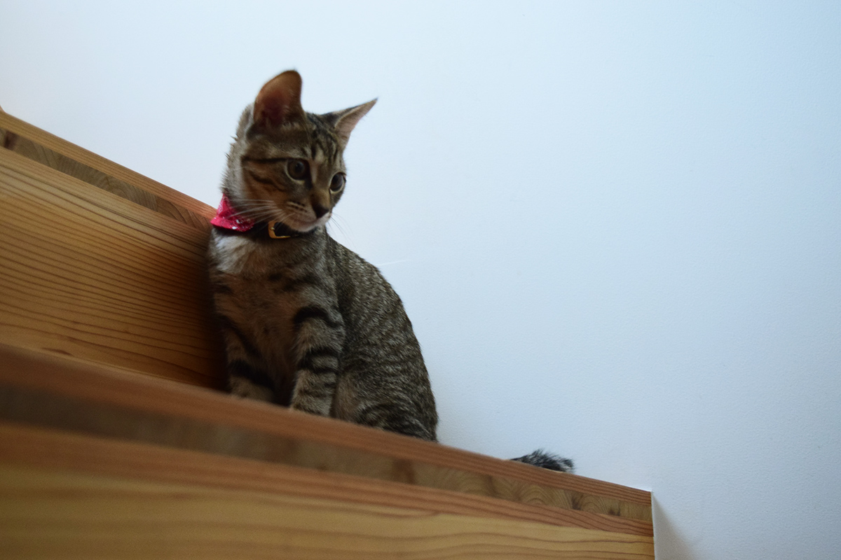 JUGEMテーマ:キジトラの猫 階段の1段よりも背が高くなったよ。