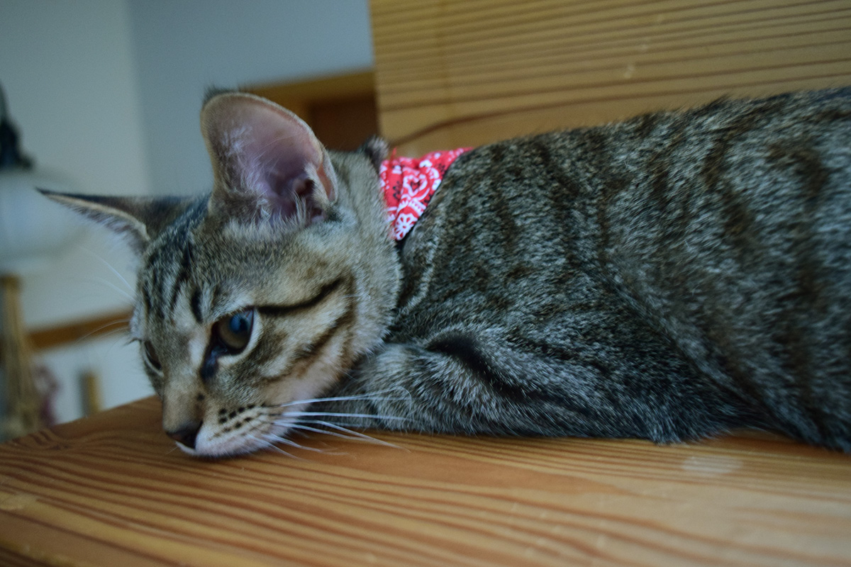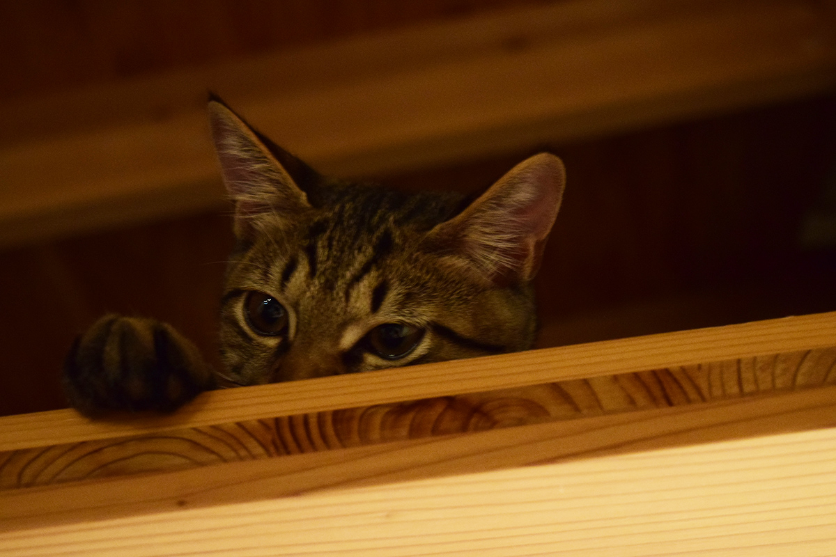 JUGEMテーマ:キジトラの猫 ここにあがれるのは猫だけ。 上からこっそり頭をツンツン。