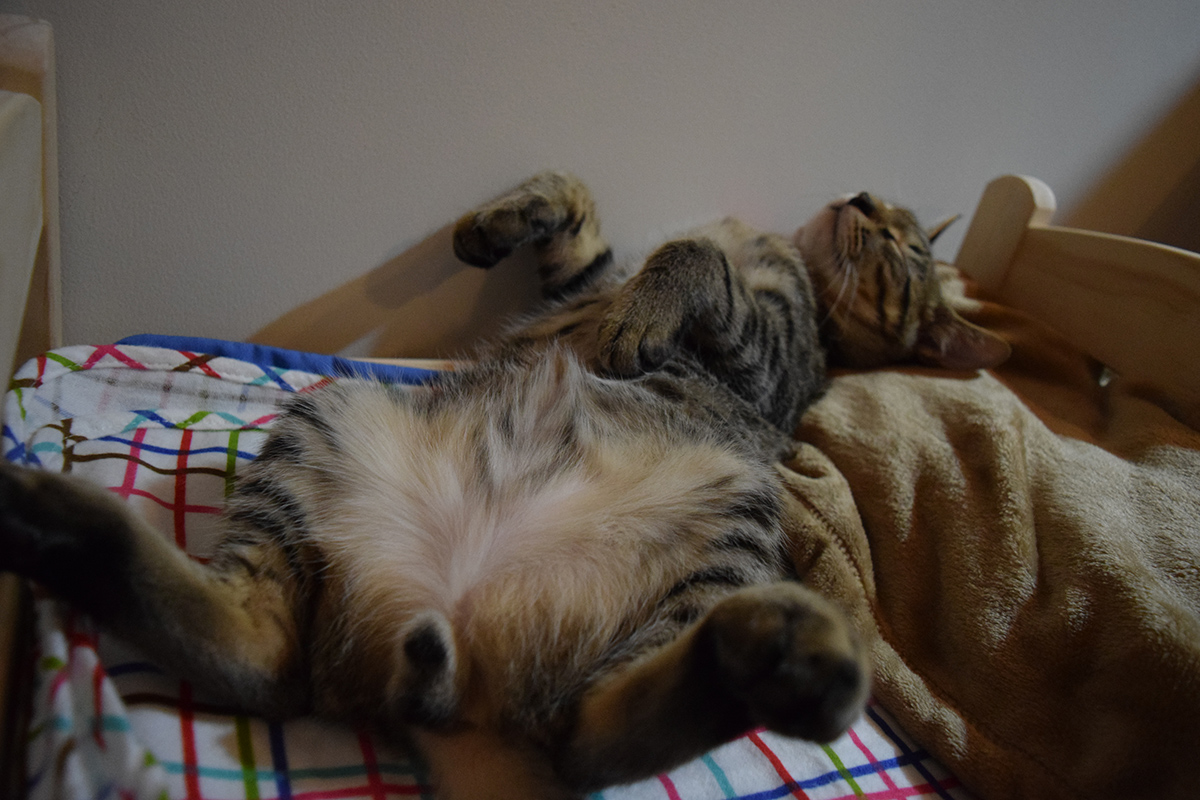 JUGEMテーマ:キジトラの猫 明日で生まれてから5か月! 大きくなったから今日から大きいベッドを使うことに決めた!!