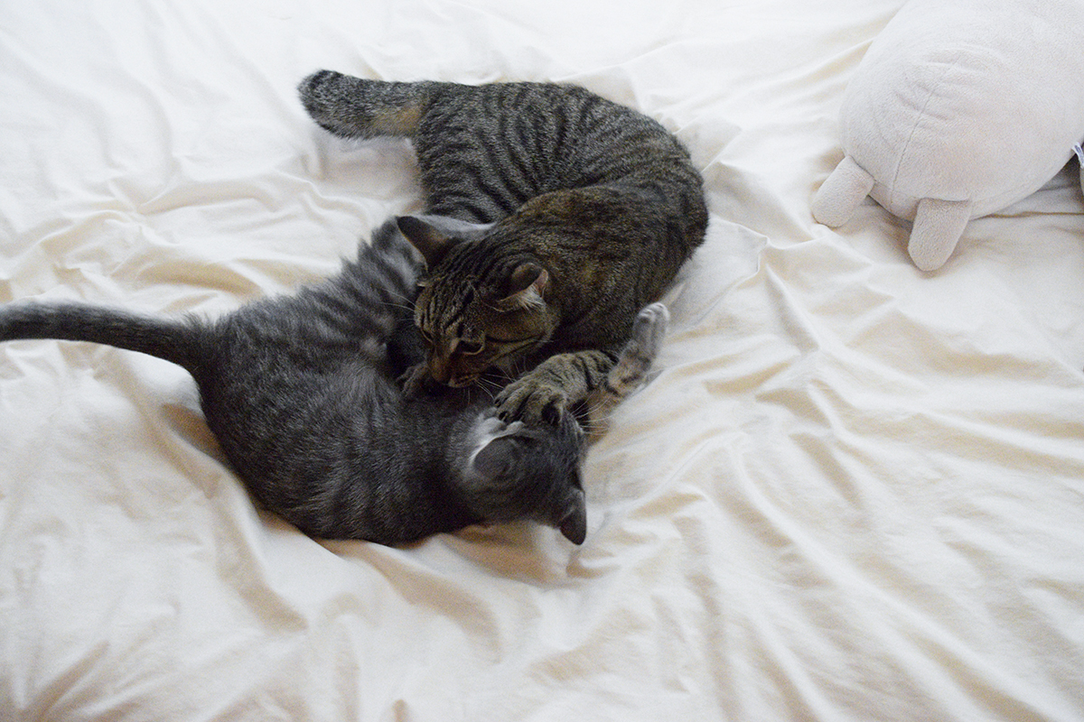 暑くてお外に出られないのでお家にいたら春太が張り切ってます。 ちょっとだけ相手をしてあげることにします。 飛んだり跳ねたり元気ですね。 虎と遊んだあとはネズミちゃんを咥えて一人で走り回っていました。 虎はお外でトンボを捕まえます。 バッタを追いかけます。 いっぱい走り回った後はお昼寝です。 人間がフェリウェイを買ってくれたので今日は虎もぐっすりスヤスヤです。 &nb...