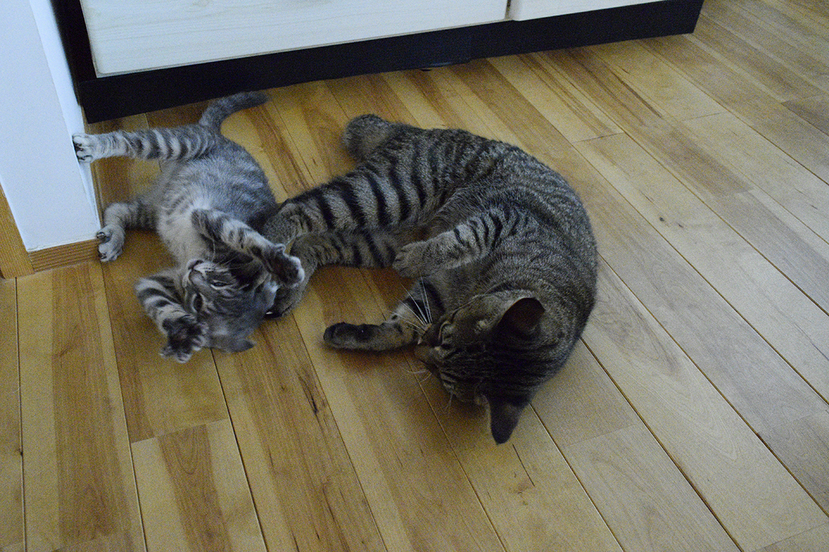 今日も朝から春太に襲われました。 春太はもう一人でなんでもできるようになったので虎は容赦しませんよ。 春太の反撃もなかなか鋭くなってきました。 虎と春太の戦いを動画で見たい方はこちらからどうぞ↓ お散歩に出たのですが暑すぎです。 虎はとてもひんやりする場所を見つけました。 尻尾がちょっと暑いですけどね。 お散歩から戻ると一人で暇そうな春太が待っていました。 虎を踏んで歩かないでくれますか? &nb...