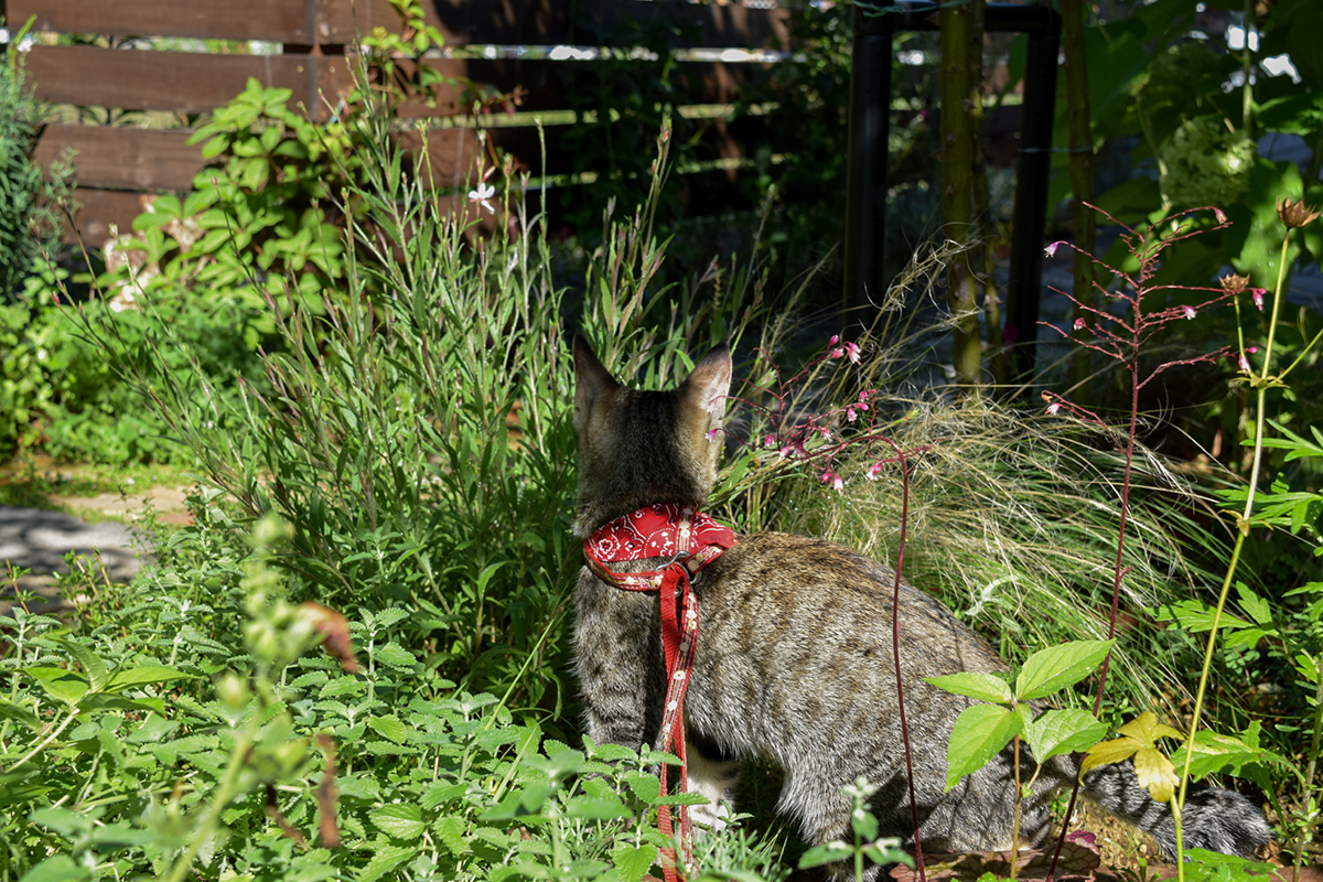 今日は虎が散歩猫になってからちょうど丸2年です。 ベランダに出ようとして部屋に連れ戻されてふてくされていたら人間が外に出してくれた記念日です。 2年前の虎ノ介 → Click 虎は初めての日から草の中に入るのが楽しくてハーネスをつけられているもまったく気になりませんでした♪ これが2年前の虎です。 そして今の虎も草の中に入るのは大好きです。 2年前はお隣のお家に脱走するのにフェンスの下をくぐり抜けなければいけなかったのですが、今ではフェンスを上るのも降りる...