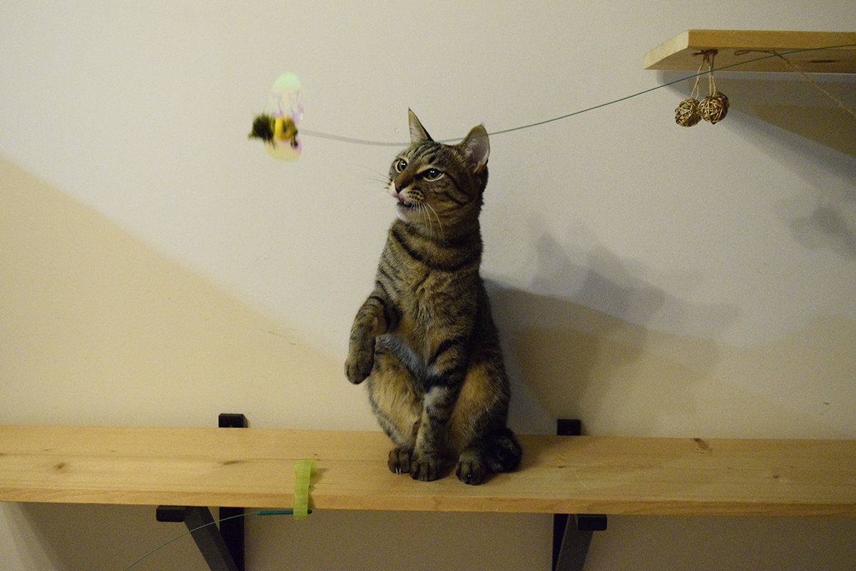 番外編: いつもチンピラ風な春太を可愛く撮ってみよう作戦の前半はこちら → Click 人間の努力むなしく無邪気で可愛い子猫らしい春太の写真が全然撮れないようなので虎が見本を見せてあげることにします。 こんな感じで猫じゃらしで遊びつつ無邪気さを演出してみます。 小首をかしげるのもなかなか受けがよいですよ。 真剣な眼差しとお手々の使い方もポイントです。 さぁ、春太もやってみてください。 なかなかいい感じではないですか。 真剣なお...
