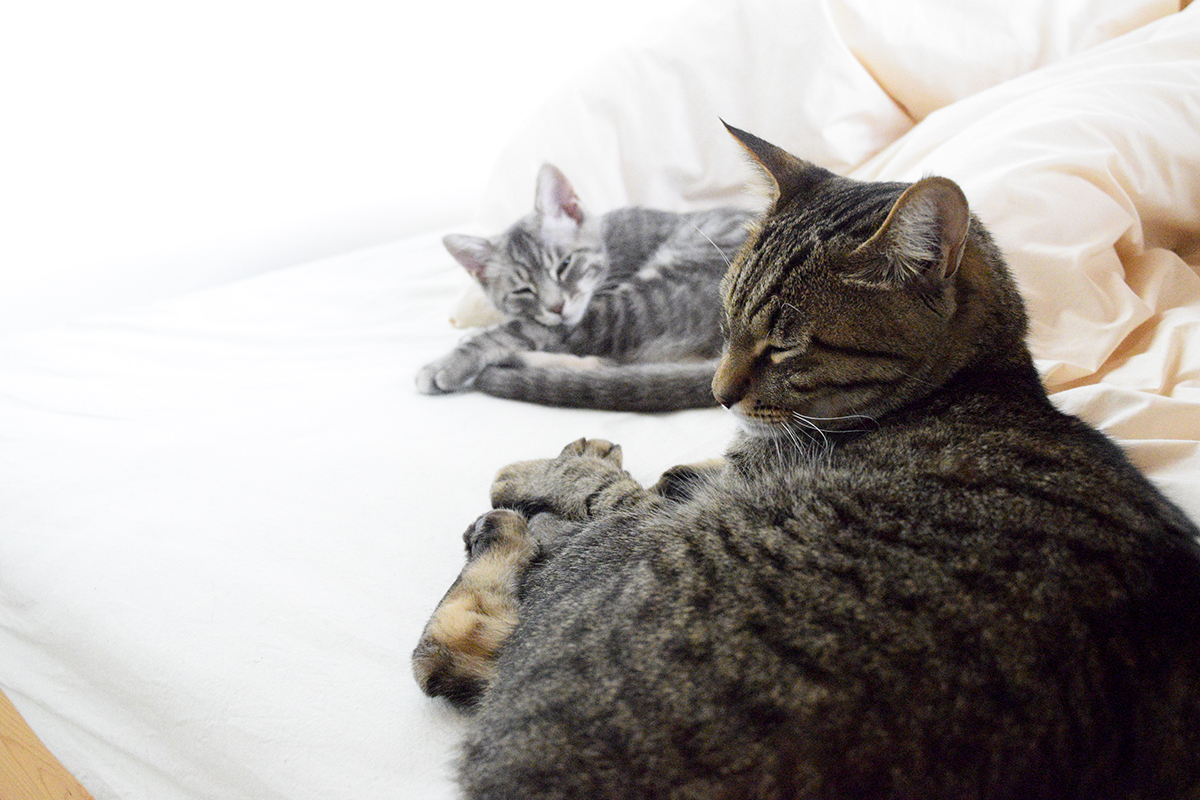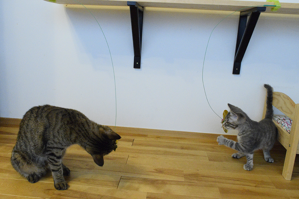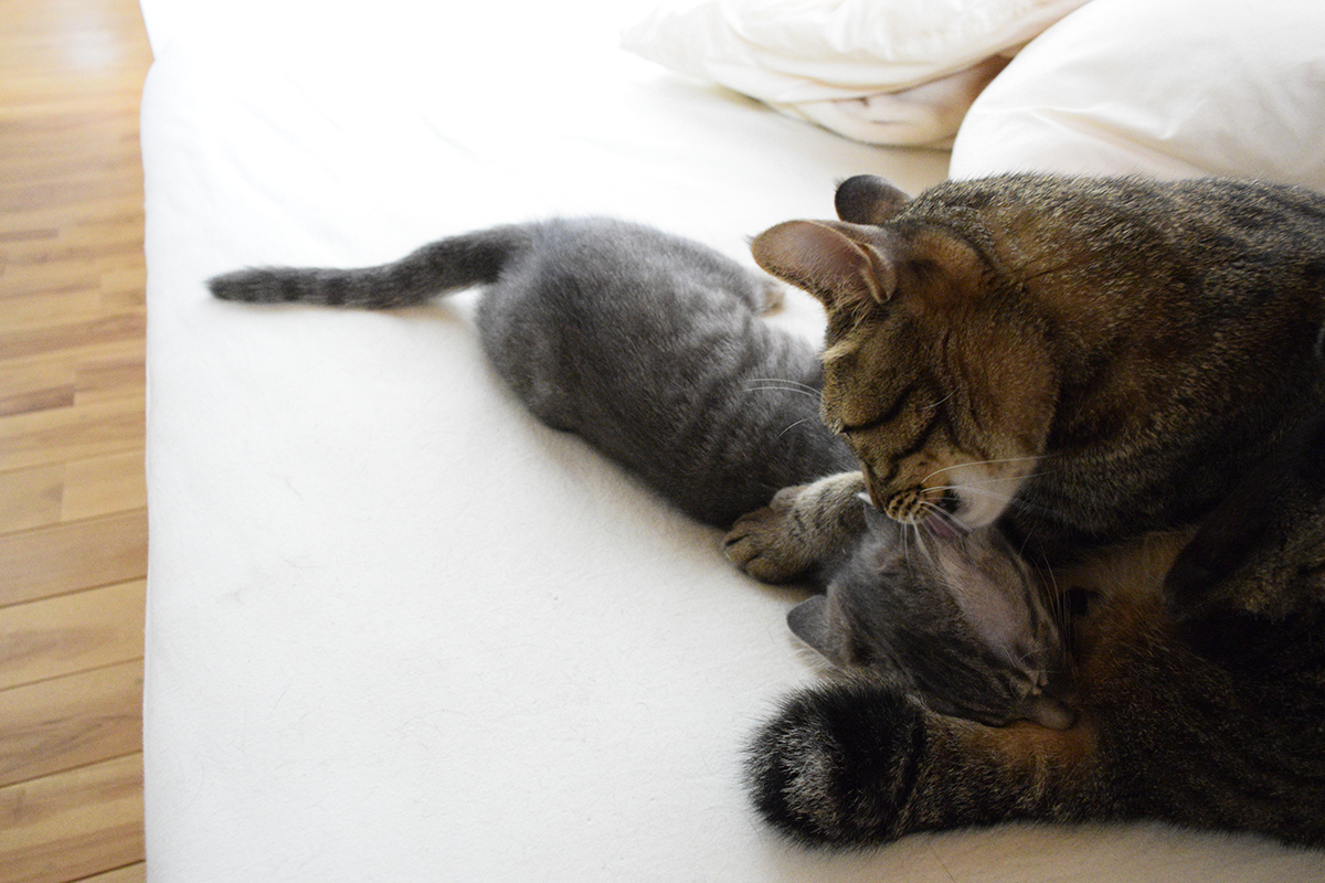 最近春太が虎のご飯を横取りしなくなったので並んでごはんを食べられるようになりました。 虎が窓の外を眺めていても少し離れた場所で一人で遊んでいるようになりました。 春太もなかなか距離感がわかってきましたね。 なんて油断していると…すぐにこれです…。 いきなり飛びついてくるのはやめてくださいね! 虎は一人になれる場所に避難します!!と思ったのですが… なんで春太がそこにいるのですか?! いつの間...