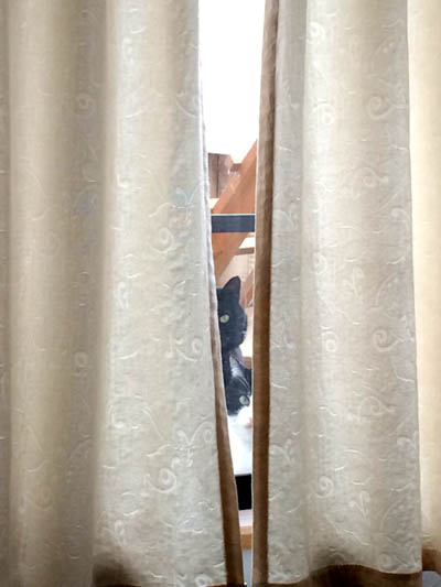 JUGEMテーマ:2匹の猫の暮らし 猫ちゃんを家の中で飼いたいのは、やまやまですが、 どうしても無理な、うちのお抱え職人さん。 なので、我家にはリビングに面した場所に、猫ちゃんの部屋があります。 窓の側で、転がれるように、台を設置してるので、 窓越しに中の様子を覗うのです。 この日、カーテンをちゃんと開けてやってなかったんですね〜〜。(汗;) 細い隙間から、2匹で覗いてました。 その感じが、妙に笑え、いただき〜。 可愛い画が撮れました。^^