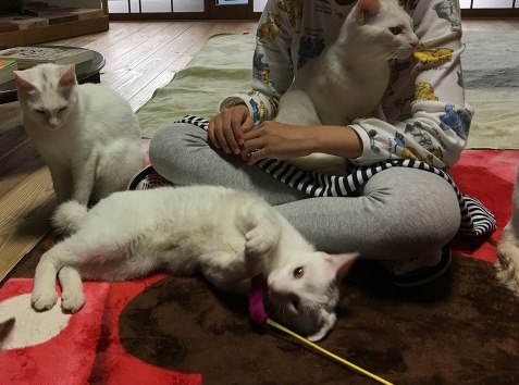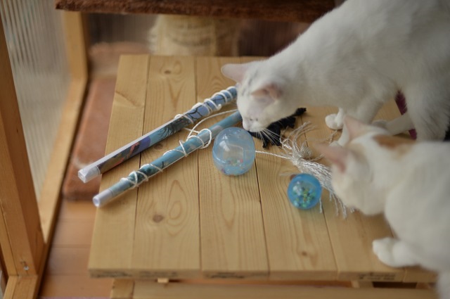 JUGEMテーマ:MIX猫 昨日は楽しいお客様に心和む一日でありました。 ありがとうございます!!ヽ(^o^)丿 手作りのおもちゃや猫のお部屋、美味しいおやつ等をお持ち下さいまして、 猫達は大喜びでありました〜〜!!(≧▽≦)!!!! みなさんがお帰りになったあとのりゅう君です。 楽しいおもちゃ独り占めしてましたよ〜! 素敵なおもちゃを本当にありがとう〜〜。byりゅう。 段ボールで作って下さった猫のおうちです。 大人気です。 なるほど〜。このぐらいの大きさが好きなのね! 参考にさせて...