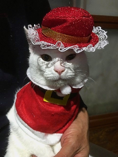 JUGEMテーマ:MIX猫 今日はクリスマスですねぇ〜! 楽しんでますかぁ〜♪ 今日、ちょこっとお店をん覗いたらサンタさんコスプレ?っぽいの 見つけて。 (もっと早く気づけばよかった、、、) 先ほど、小梅に着て頂きました。 良い子ね!小梅! きちんと写真撮影したかったなぁ〜。。。。 葉っぱんとかみんなに風邪がうつってて、それどころではなかったの。。。 今日も葉っぱん、相変わらずです、、(´・ω・`) 二階組の猫達はすっごく元気!元気!! 写真はまりんです。 「もっ...