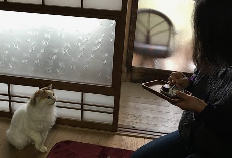 JUGEMテーマ:MIX猫 今日も素敵なお客様がいらっしゃって下さいました。 猫好きさんとの交流は幸せはひとときであります。 猫達もとっても楽しそうです! 猫達も猫好きさんがわかるようです。 みんなでお茶を頂いていたら珍しくみゅうちゃん、登場であります。 美味しそうな羊羹をキャッチしたらしいです。 この羊羹、昨日いらっしゃった素敵な方からの頂き物です。 「栗羊羹」 栗ははちみつで美味しく作っているようです。 お客様も美味しいと喜んで下さいました。 この羊羹は「イワキヤ菓子店」...
