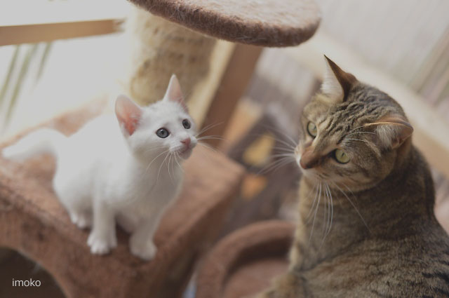 JUGEMテーマ:MIX猫 Nikon/Ai AF Nikkor 50mm F1.4D 小梅とクッキー。 どんどん大きくなる小梅。 三匹の中でも繊細な性格の子。 クッキーお姉ちゃん、優しいね。 人気ブログランキングへ ネコ写真 ブログランキングへ ヴィーガン ブログランキングへ