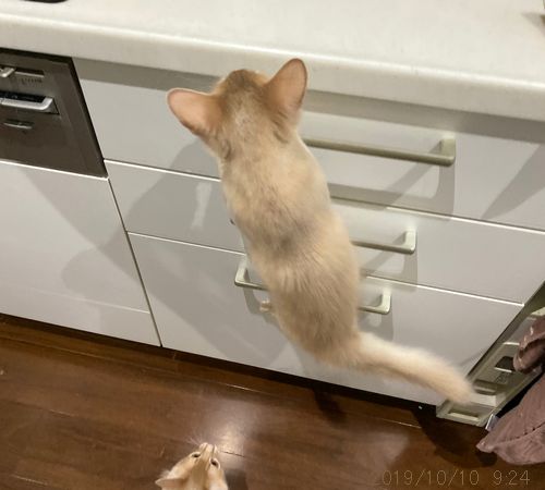 JUGEMテーマ:ソマリの子猫 本当はもうジャンプで上れるのに 律儀な美勒ちゃん。 文珠くんは真似しないので 見たら何でも学習するわけでもないらしい。 今日も活動的な美勒ちゃん→文珠くん。 今やこれが一番楽しい時間のようです。 バスタブの中の文珠くん。 人好きで、お茶目な性格ですよ。 キッチンのシンク。 食洗器から流れ出るお水が 気になってしかたがない美勒...
