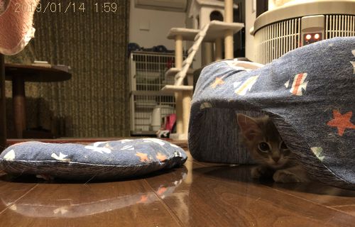 JUGEMテーマ:ソマリの子猫 猫ベッドをヒータの脇に置いておくのに 朝になると廊下にあったり窓辺にあったり、 文字通り蹴散らされています。 悪いことしてるって少し理解してる うりちゃん(ひっくり返されたベッドの中) 少し前まで、この中でよく寝ていたのに 最近は専ら遊び場です。 コアちゃん。 またの名を、Lovely Mimige もみちゃん(左)とコアちゃん(右)の闘いに 参戦する...
