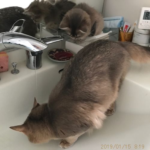JUGEMテーマ:ソマリの子猫 手前の2匹は、うりちゃんとママ。 お乳を飲んで大満足の表情です。 その1時間後、ドライフードを食べる もみちゃんとリオちゃん。 みんなバラバラとお腹空いたアピールをするので 1日のご飯の回数がとっても多い今日この頃。 朝・昼・晩と3回は全員揃って食べて、 それから、朝〜昼、昼〜晩、晩〜朝のあいだに 各々のタイミングで「ご飯ちょうだい」 &nb...
