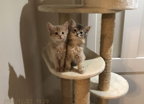JUGEMテーマ:ソマリの子猫 少し前まで4匹みんなで遊んでいたのだそう。 私が気がついたときには、 リオちゃんともみちゃんだけでした。 この一段上にハウス部分があるのですが、 今いるここも結構な高さで 雪倉ママが心配するのも分かります。 この後タワーの上に迎えに行っていました。 たくさん暴れた後の「ご飯ください」アピール。 あっという間に消費されていくご飯に 2匹のときとの違...