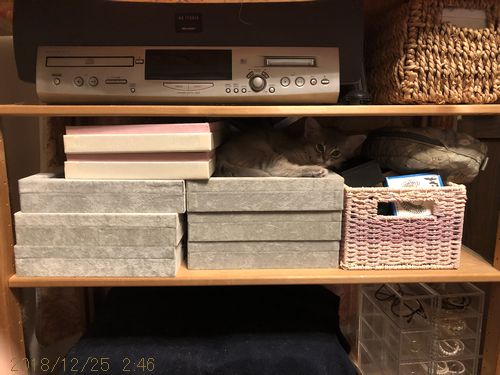 JUGEMテーマ:ソマリの子猫 「ちょっとご飯食べさせ過ぎじゃない」と お世話係2から言われ、 確かにお腹が丸すぎる気がしてきました。 安定感のある姿を見せてくれたリオちゃん。 一瞬一瞬を楽しむ天才です。 いつも仔猫たちが寝静まったのを待って 体重を量っているのですが、 寝静まってしまうと探すのが大変。 シェルフの布をめくったら、 こんな所にうりちゃんがいました。 ...