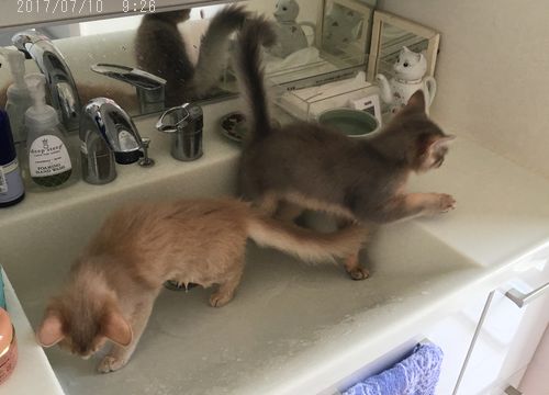 JUGEMテーマ:ソマリの子猫 リアクション芸人・桜香 先日、麗くんが居たニッチに桜香ちゃんがいた。 麗くんも下で上りたそうにしていた。 桜香ちゃんは「やなこった」と拒否。 麗くんを追い払うと何かをし始めた。 あれ?あれ?と何かを確認している桜香ちゃん。 ...