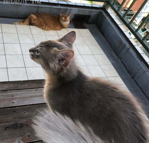 JUGEMテーマ:ソマリの子猫 桜香ちゃんが巣立ってから約24時間経過。 ひとりになった麗くんですが、 今朝も同じようにベランダパトロールに来ています。 ↑麗くんのフワフワ尻尾。 なんとなく変な感じがするのですが、 猫たちはこういうとき 居なくなった者をほとんど捜しません。 ふらっと現れたかと思えば、 ふらっと何処かへ行くのが猫の常だからかな。 ...