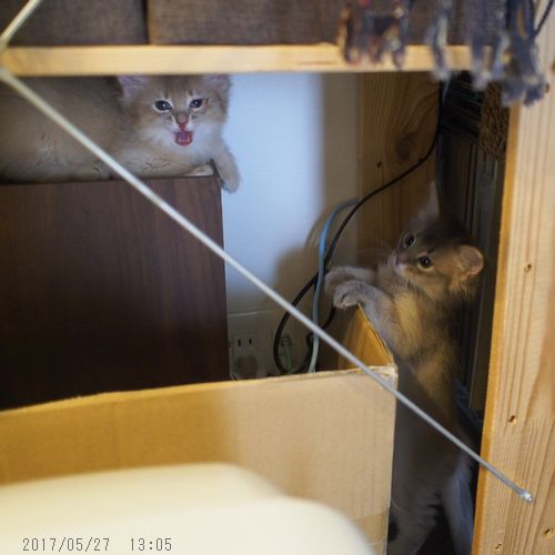 JUGEMテーマ:ソマリの子猫 窓辺のケージ上に来られるようになったので ここも朝のパトロールのルートとなりました。 昨日(目の調子が)絶不調だった桜花ちゃん、 今朝も動物病院へ注射を打ちに行ってきました。 帰宅後はストレス発散なのか 大好きな紙をガブガブ。 ママが桜花ちゃんの様子見に来てくれました。 桜花ちゃんは、そのままママにオッパイを...