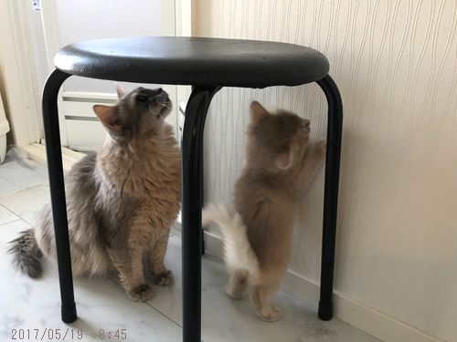 JUGEMテーマ:ソマリの子猫 仔猫たちが一番元気な時間帯は、朝食後。 オトナ猫は興味すら示さないボイルカーテンで 今まで産まれた仔猫たちも みんな同じように遊んでいました。 沢山の日差しを浴びて2匹で仲良く過ごします。 お休みも一緒。 麗くんは少しずつドライにも挑戦しています。 身を乗り出して食べるほど...