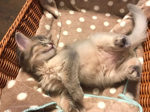 JUGEMテーマ:ソマリの子猫 眠たくなって毛繕いしたいのか 遊びたいのかよく分からなくなってる麗くん。 長い動画なので重いと思います…ゴメンなさい。 どの瞬間も可愛くて短縮できませんでした。 そして、やっと熟睡。 ガニ股が男らしいでしょ!? 眠たくなるとお膝に来るのは麗くんも同じ。 仔猫はぐずって泣いたりする代わりに 服や指をガ...