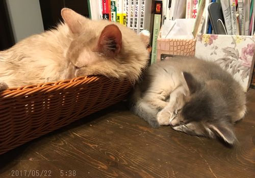 JUGEMテーマ:ソマリの子猫 最近お気に入りのカゴで寝るつもりが この日は曾祖父ちゃんにが先に寝ていました。 みんなで暮らすってことは、こういうことだよね。 譲り合って仲良くしてね。 この子たちは少しご飯に飽きっぽくて 今朝は曾祖父ちゃんのご飯の方が美味しそうと とって食べてしまっています。 曾祖父ちゃんは仕方なく麗くんのご飯を。 奪い合っても仲良くね。 ...