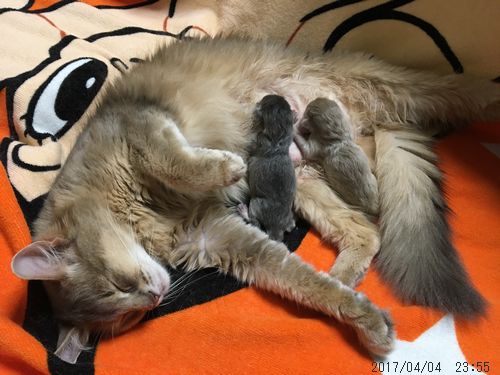 JUGEMテーマ:ソマリの子猫 予定日だったエイプリルフールには出産の気配すらなく 翌々日の3日になってようやく軽い陣痛のようなものが。 でも、でも、あらら、生まれてくる気配なし。 掛かりつけの獣医さんへ診療時間内に電話をし 一応『こんな具合だけれど』とだけ報告。 結局、翌4日の夜、診療時間外に帝王切開。 緊急のオペは、その時間でないと出来ないからです。 20時までの診療時間なのに オペが終わってお迎えに行ったのは22時50分。 一...