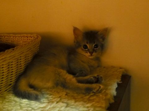 JUGEMテーマ:ソマリの子猫 お世話係のPCが置いてある机の下は 猫ほいほいスポット。 みんにゃに人気の憩いの場です。 仔猫たちもよじ登れるようになったので 眠たくなるとここに集うようになりました。 カコ君。 カゴの中にはブン君。 そして、エツ君。 かごを取っ払ってのスリーショット。 並ぶとよく分かるのですが 各々お顔が違います。 性格は、みんな『いかにもソマリ』な 人懐こい子たちです。 昼間の明るい写真も幾つか。 ダイニングテーブルの下が好き...
