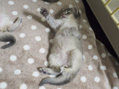 JUGEMテーマ:ソマリの子猫 ママと仔猫たちが過ごしているスペースに 雪倉が割って入るので 猫密度が高く感じられる寝室の一角。 仔猫たちは手前から、ブン君、エツ君。 カコ君は、どこか分かりますか? 雪倉の枕となっていました。 **0**0**0**0**0**0**0**0**0**0**0**0**0**0**0**0**0**0**0** 寝て起きたときも同じ場所にいた雪倉。 (ブン君 →エツ君 →カコ君) 仔猫たちは頭も大きくなったので みんないっぺんに飲むと こんな感じです。 **0**0**0**0**0**...