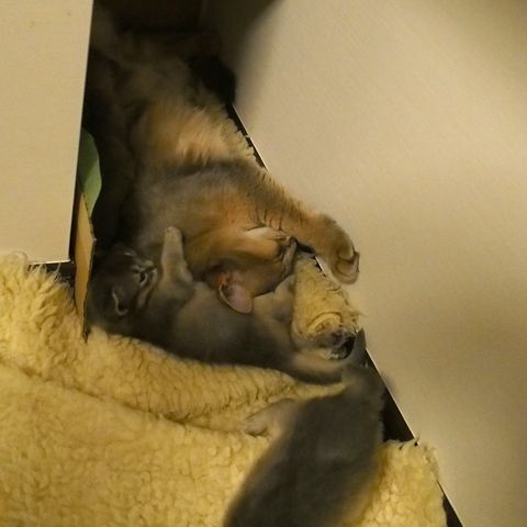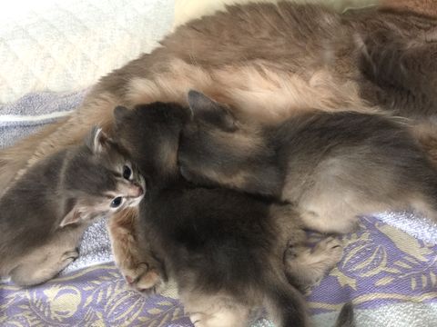JUGEMテーマ:ソマリの子猫 昨日、仔猫たちの体重が あまり伸びていなかったのは 雪倉を猫部屋から出していたから。 雪倉は仔猫たちの側を離れたがらず、 ママは雪倉が側にいると 面倒を見てくれて安心するのか その場から離れて ひとりで休んでしまいます。 すると、仔猫は自分のタイミングで 飲みたいだけ飲むことが出来ません。 雪倉と仔猫たち。 ママを連れ戻して授乳させました。 もはや母性本能炸裂で 誰でも可愛がりたくて仕方がない雪倉...