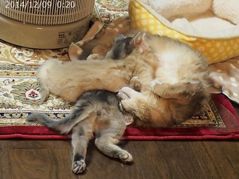 JUGEMテーマ:ソマリの子猫 仔猫たちは結構な量を食べます。 一日の総量としては、 おとな猫よりも多いです。 夜の2回は仔猫だけにあげたいのもあって 手のひらから直接食べさせています。 仔猫たちが欲しがるときに欲しいだけ、 感覚としては、ちょうど授乳が そのままドライフードに代わるだけです。 そうすると、寒かったり日差しの少ない日は、 寝ている時間が長くて運動量が少ないせいか 欲しがる量が減るのが分かります。 逆に天気の良い日は、大暴れして たくさん食べて、ぐっすり寝て、 そ...