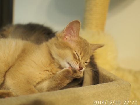 JUGEMテーマ:ソマリの子猫 祝 10 Week Anniversary この頃の仔猫たちは、 自他の区別がハッキリしてきて、一方的に ○○したいではなく、相手の気持ちを 読み取ろうとする仕草が見られます。 ママに甘えている とっとこ。 安心しきっています。 ベッドの上を散策する2匹。 見た目も賢そうになってきました? 大きいお姉ちゃんの臭いを嗅いで フレーメンしているハムちゃん。 カメラのレンズにパンチするハムちゃん。 ハムちゃんの方が、少し幼い...