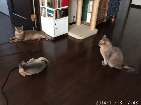 JUGEMテーマ:ソマリの子猫 今日も元気にひと暴れしたあとのハムちゃん。 ポールの影がちょうどお顔にきているのが気になったけれど 撮ったものを見てみたら案外瞳が綺麗に写せていました。 カッコいい? 同じ時間帯のとっとこは、まだもう少し遊びたいみたい。 この日は、午後から弟夫婦が遊びに来てくれて ネコ大好きな姪っ子ちゃんが いっぱい猫じゃらしを振って遊んでくれました。 お蔭で、夜は静かで こういう日は体重測定がサクサク済みます。 ハムちゃん...