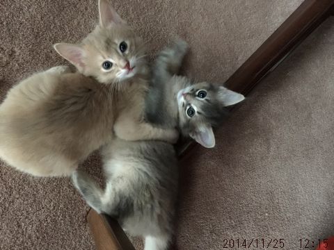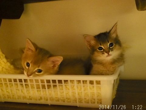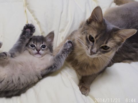 JUGEMテーマ:ソマリの子猫 朝のとっとこ。 まだ自分では登れないベッドの上に乗せてもらい そこで寝ていたお姉ちゃんと遊んでもらっています。 でもこの表情を見る限り、お姉ちゃんは楽しんでいなさそう(笑) とっとこが少ししつこ過ぎたのだと思います。 仔猫にありがちなことです 朝のハムちゃん。 ママに毛繕いしてもらっています。 もうおトイレはひとりで出来るのですが、 ママにはハムちゃんの身だしなみに気になるところがあったのでしょう。 夜の体重測定のとき仔猫た...