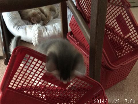 JUGEMテーマ:ソマリの子猫 ダイニングテーブルの下で眠るブームは去ったようで 2匹は私の机の下のカゴで休むようになりました。 コントラストでピントを合わせるようになっているらしく 色合いの優しいハムちゃんではなく とっとこばかりがハッキリ写ってしまっていますが GIFを作れたら一枚で済んだものを それが出来ない低スペックな私なので 10枚連続で貼ってみました! とっとこのお茶目な表情と ハムちゃんの動きのなさが可愛いでしょ...