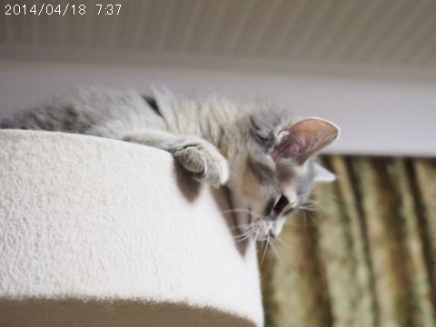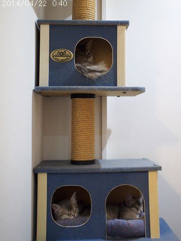 JUGEMテーマ:ソマリの子猫 新しい場所に行きたがる水晶。 今日は、一番高いタワーのてっぺんに登り 降りられなくなっていました。 キューキュー鳴くの。 ソワソワと動き回りながら。 昔売られていたタワーって、ステップの一段一段の間隔が広くて 仔猫と老猫には不親切設計だったりします。 おとな猫には高さがあって、それがすごく良いんだけど。 で、水晶のボケてない写真も欲しくて籠に入れて動きをとめてみたところ、 雪倉も「入る〜」とやって来て 水晶のお顔に雪倉の胴体という芸術的...