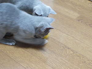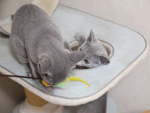 JUGEMテーマ:ロシアンブルーの子猫 真剣な顔してるシトリンちゃん のび〜してキャッチー 狙ってます ルチルちゃんも狙ってます