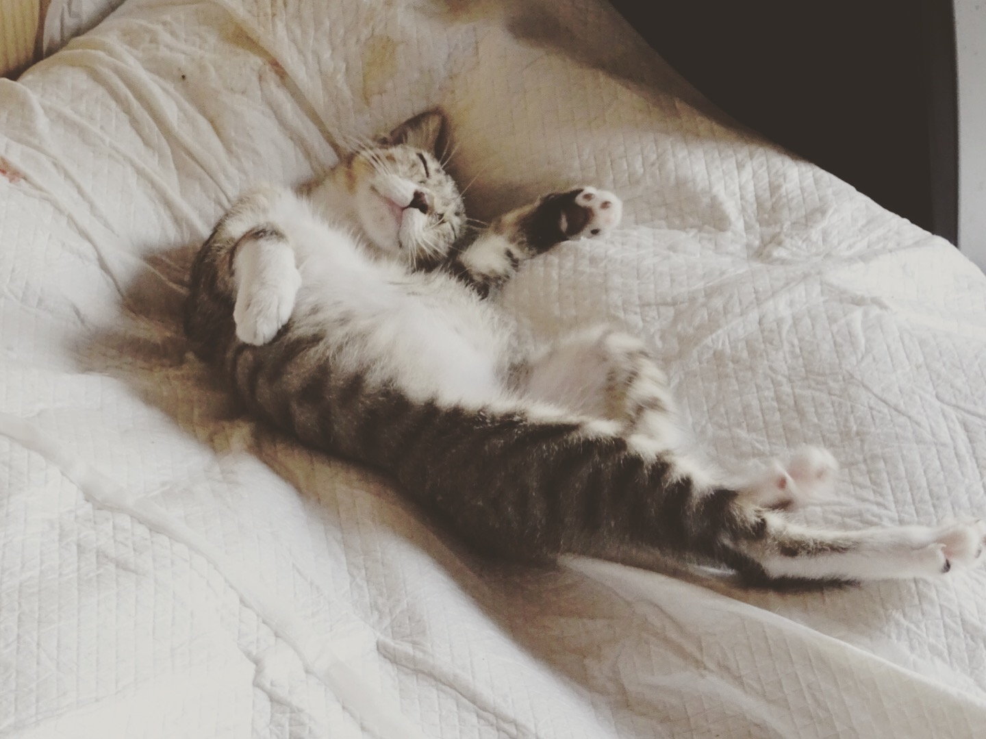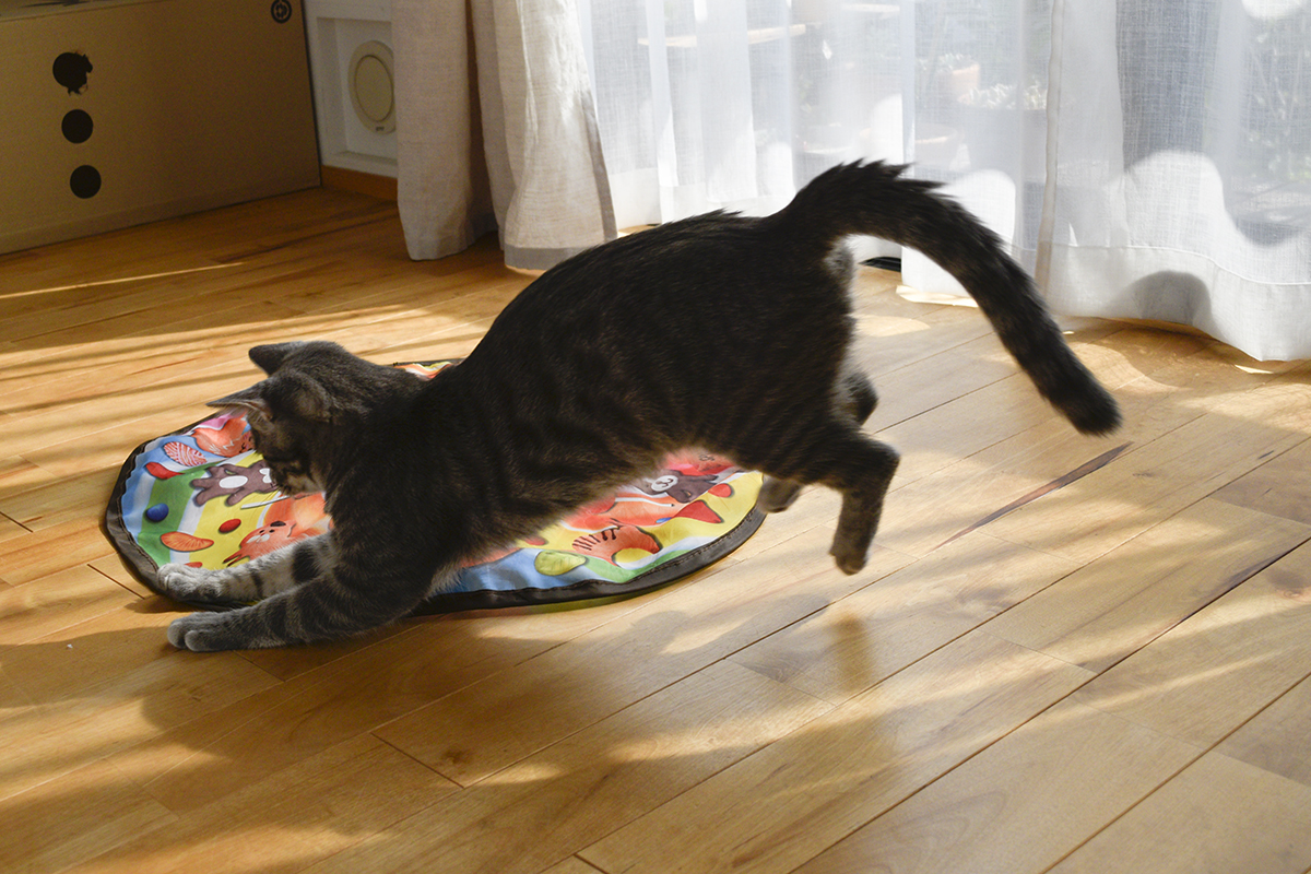 春太だよー。 虎兄がかまってくれないからキャッチミーイフユーキャンで一人遊び。 捕まえるの上手になったよ。 跳ね回らなくても転がったままでも余裕! 転がったままガシガシ。 疲れたのでお昼寝。 寝てる姿は小さい頃から変わらないって言われたよ。 変わってないかな? おとなになったと思うんだけどなぁ。 JUGEMテーマ:子猫との生活
