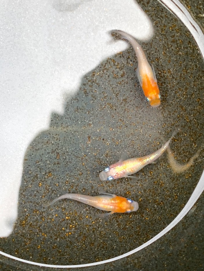 こんにちは、悠遊です。 今日は、お昼に更新という珍しい事をしているので、きっと明日は雨ですねw で、今日は、小町 まだ親だねもセットしていなかったんですが、重い腰を上げて、セットしてみましたw 本当は、取るのを辞めようかな?って思ってたんですが、面白い個体を見つけたので! では、 青タライ育ちの為、色は揚がってないんですが、良い体外光の子を見つけてしまって・・・ 頭に赤が入っていてくれれば良かったんです...