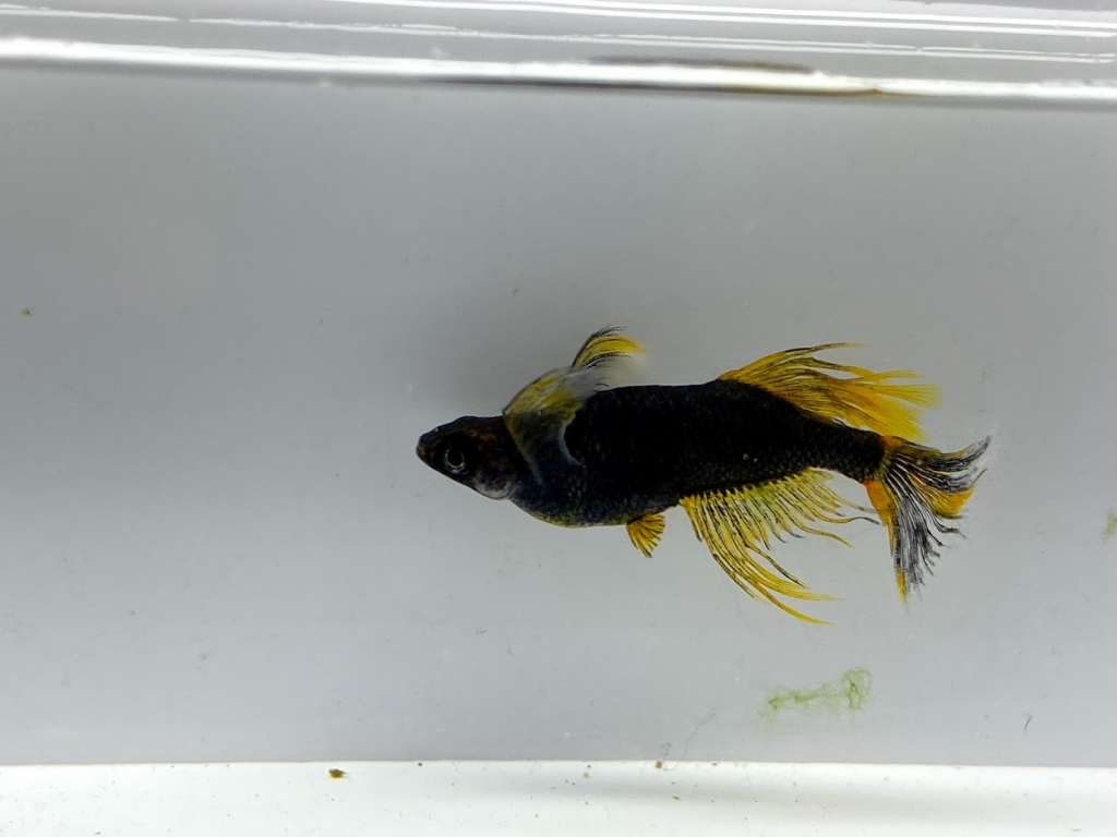 こんばんは、悠遊です。 自論・・・ 綺麗なら背曲りでも、別に良くねっ? まあ、売ることは無いんですが、自分の目の保養にw 今日のブログネタであり、酒の肴ですw あっ、食べるわけではありませんよ! 背が曲がっているので、累代することは無いんですが、時々眺めながら、お酒飲んでます。 あっ、蛟ヒカリです。 で、体系矯正と言うよりも、やり直ししてる子なんですが、 出てきたヒレ長1匹...