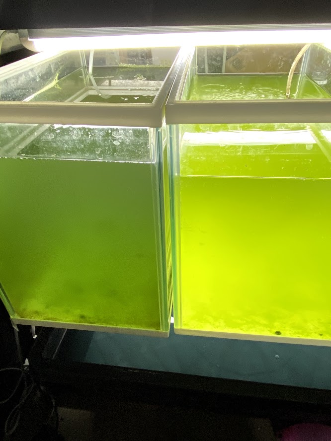 こんばんは、悠遊です。 ミジンコ頑張って増やしているんですが、やっと・・・? 販売できそうです・・・が・・・ 電話予約していただけると幸いです。 080−8557−6075まで! 今回販売可能なのは、タマミジンコです。 右グリーンウォーター 左スピルリナなんですが、スピルリナのほうが、増えてる感じ! 明日、ミジンコ水槽もう何個か増やしてみます。 後は、リセット時期を見極めなきゃ(笑) ...