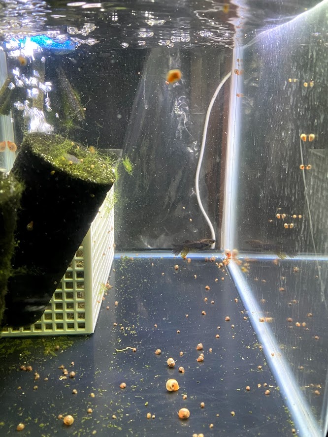 こんばんは、悠遊です。 あれから1週間シリーズの子が、やっと卵を産み始めました! 数日前から・・・ 今のとこらは、文句なし(笑) ヒレ光も素晴らしいし、多産なようです。 文句というか、突き詰めるなら、ヒレの軟条の間にもグアニンを入れたい! まあ、累代選別を重ねれば、きっと入ってきますよ・・・ね?(笑) 後は遺伝率ですね〜 まあ良さそうな感じはするんですが! 上見でも、ヒレ長の...