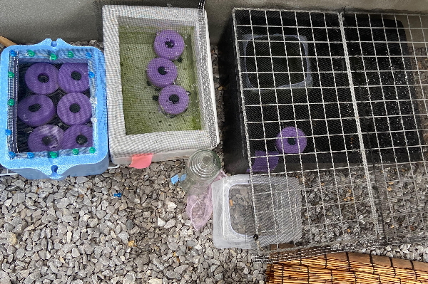 我が家のメダカ水槽はこんな感じ。 網を張っているのはボウフラ対策です。 前にソイルの中にボウフラが結構いるのを見つけたので、ボウフラが入らないように網を張っています。 メダカが成魚なら食べてくれるのですが、結局成魚の水槽には網を。 なぜかというと・・・。