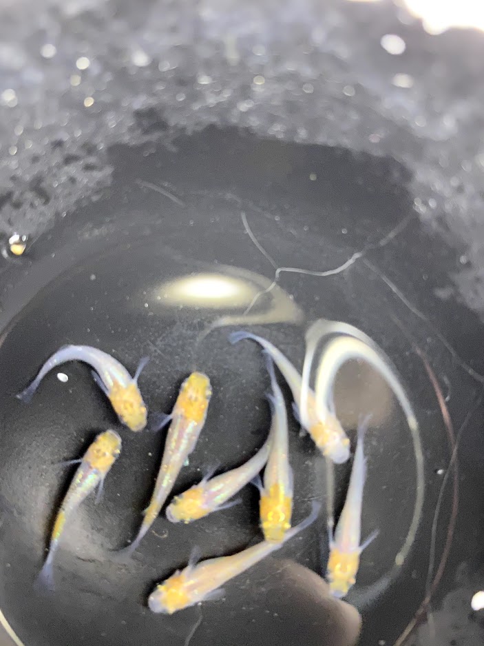 こんばんは、悠遊です。 今日は、オーロラ選別してみました。 柿色が、弱いが、綺麗です! 2匹位ヒレ長に、なりそう! ヒレに、柿色と、グアニンが浮き出てキレる子も・・・ 選別迷うよな〜 ラメ量は、無視です(笑) 何故かというと、体外光を出すためです。 結局上見で仕上げていきます。 親は 直系の親ではないんですが、親の兄弟魚です。 来月あたりから、取れば...
