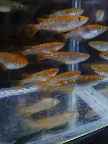 JUGEMテーマ:国産改良品種メダカ めだか販売店、小山メダカセンター店主のブログです。 〈店舗の在庫情報〉 店舗の販売コーナーに「琥珀ラメ」の在庫を追加しました。 琥珀体色に虹ラメと呼ばれる鱗が入った人気品種です。 尚、このメダカの販売は店舗のみになりますので、購入希望の方は直接ご来店ください。 〔営業時間;9時〜日没〕 〔店舗定休日(金)〕
