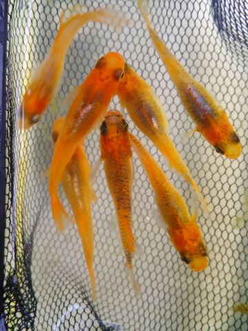 JUGEMテーマ:国産改良品種メダカ めだか販売店、小山メダカセンター店主のブログです。 当店で交配を進めているメダカの一つに、オーロラ紅(くれない)透明鱗ヒカリと呼んでいる系統があります。 ヒカリ体形のオーロラヒカリメダカと紅(くれない)と呼ばれるヒカリ体形の朱赤透明鱗ヒカリメダカを交配させた系統で、現時点でF4世代まで進んでいます。 まだ体色にばらつきはありますが、紅メダカからの不完全透明鱗性と、オーロラからの黒鱗性が融合した表現形のメダカが生まれています。