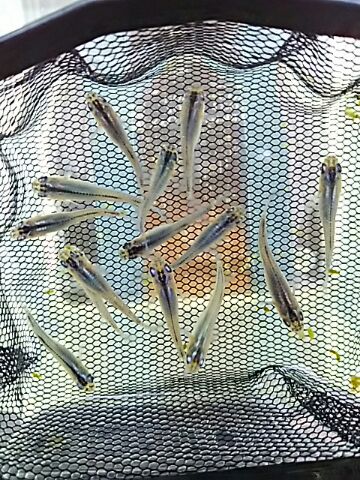 JUGEMテーマ:国産改良品種メダカ めだか販売店、小山メダカセンター店主のブログです。 〈店舗の在庫情報〉 店舗の販売コーナーに「オーロラヒカリメダカ」の在庫を若干ですが追加しました。 オーロラと呼ばれる特徴的な透明感のある青白〜黄白の体色で、ヒカリ体形のメダカです。 尚、このメダカの販売は店舗のみになりますので、購入希望の方は直接ご来店ください。 〔営業時間;9時〜日没〕 〔店舗定休日(金)〕