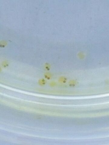 JUGEMテーマ:国産改良品種メダカ めだか販売店、小山メダカセンター店主のブログです。 二週間ほど前から採卵しているメダカの卵があるのですが、早いものは発眼状態になってきました。 そろそろふ化が近づいてきているようです。 …残念ながら予定よりも数が採れていないのですが、初めて繁殖させる系統なのでふ化するのが楽しみです!?