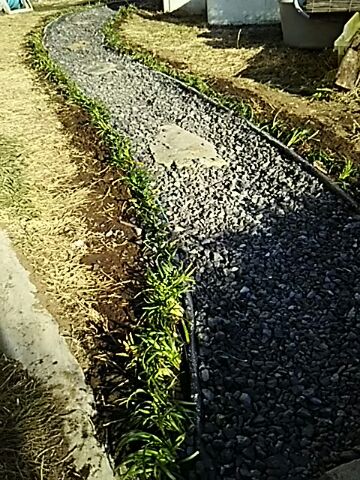 JUGEMテーマ:国産改良品種メダカ めだか販売店、小山メダカセンター店主のブログです。 ここ数日は強風が続いていましたが、今日は久しぶりに殆ど風もなく穏やかでした。 そんな陽気に誘われたのと思い付きで、敷地内の通路に砂利を敷いてみる事にしました。 実際に作業を始めてみると下地造りが意外と大変でしたが、思い付きでやった割には綺麗に仕上がりました。 …少し砂利が不足ぎみなのはご愛嬌と思ったのですが、やっぱり後で買い足そうと思います!?